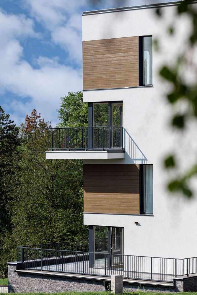Společnost Privamed, která je vlastníkem Masarykovy nemocnice v Rakovníku, dokončila letos v sousedství nemocnice (v ulici Nad Nemocnicí) stavbu tří bytových domů. Fasádu všech nových bytových domů zdobí kombinace omítky a fasádních obkladů Hardie® Plank.