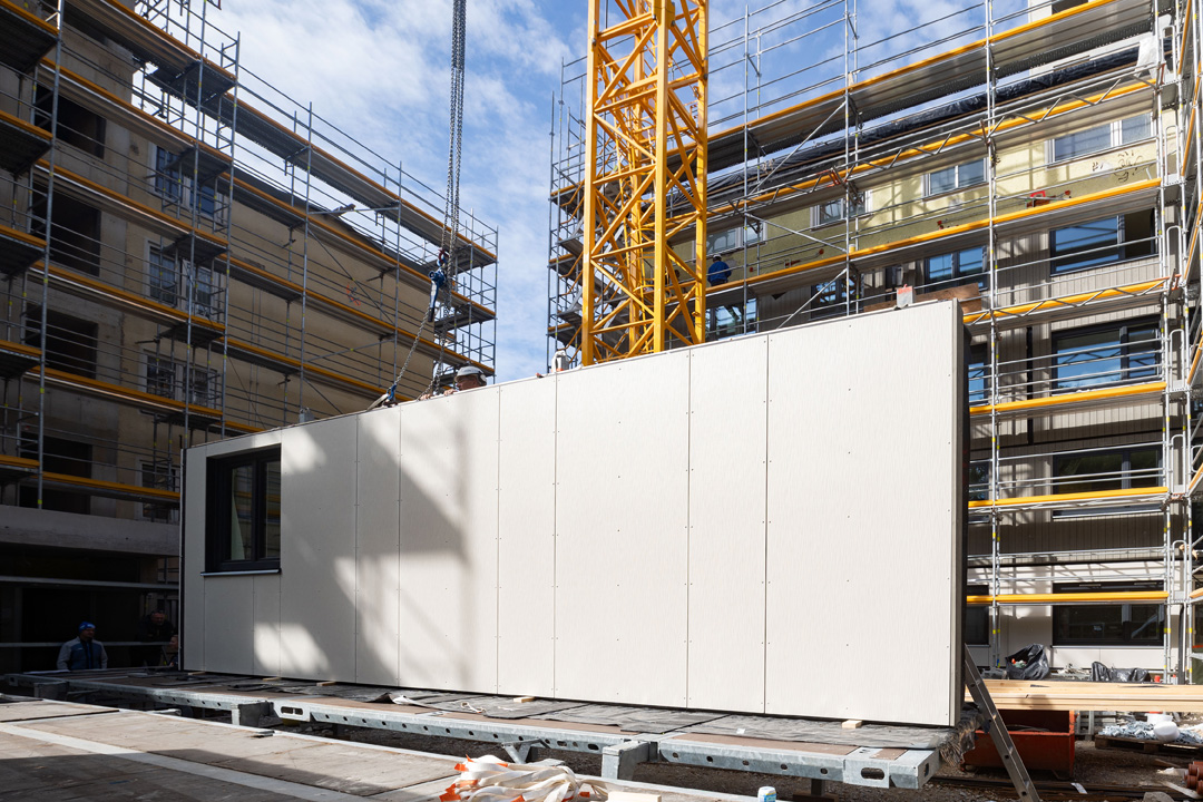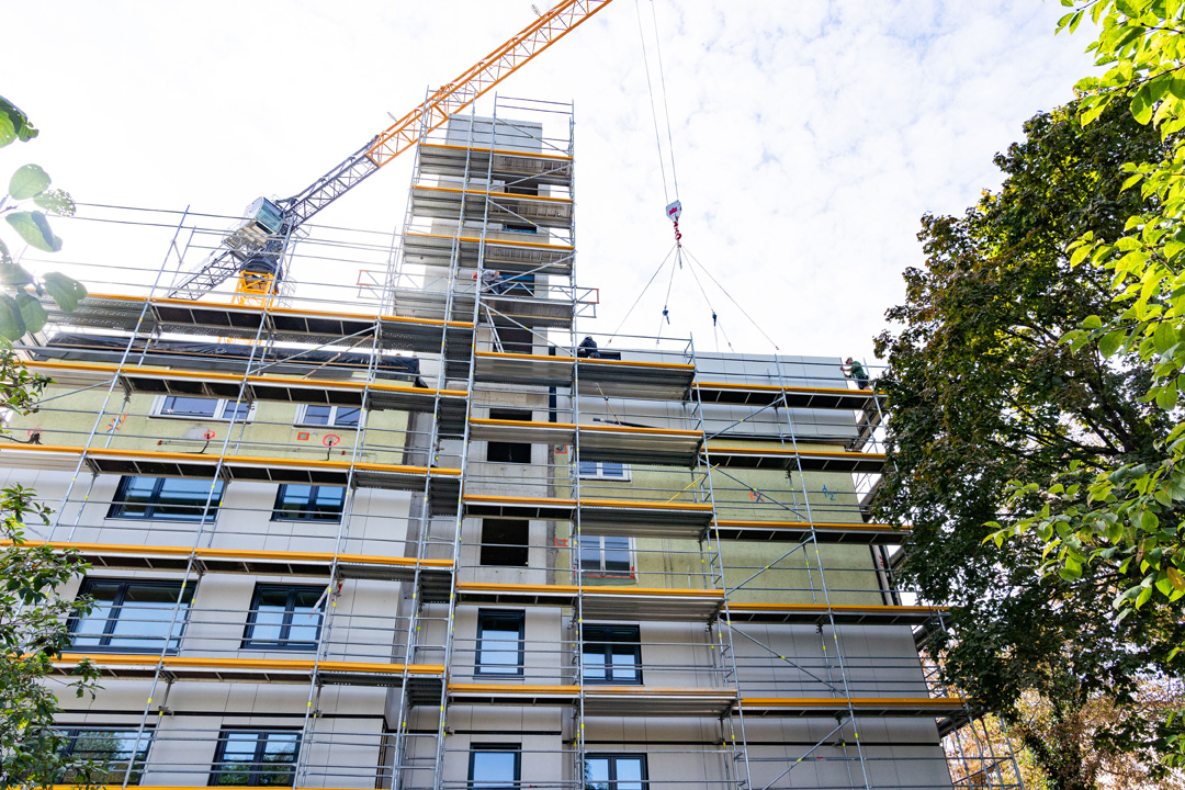 V Mnichově, kde je bydlení, jak známo, obzvláště nedostatkové a drahé, v současné době probíhá sériová rekonstrukce dvou pětipodlažních bytových domů mnichovského stavebního družstva Hartmannshofen e.G. a současně přístavba dalších tří podlaží s využitím klimaticky neutrální masivní dřevěné rámové konstrukce. Ke stávajícím 50 bytům tak přibude 24 prostorných bytů o celkové obytné ploše přibližně 1 900 m². Dostavba výtahů navíc zajistí obyvatelům bezbariérový přístup do svých bytů. Díky dotacím v rámci programu rozvoje mnichovských bytových družstev budou z tohoto opatření těžit především domácnosti se středními příjmy a několika dětmi. Dodatečné příjmy z nájemného rovněž významně přispějí k refinancování renovačních opatření.
