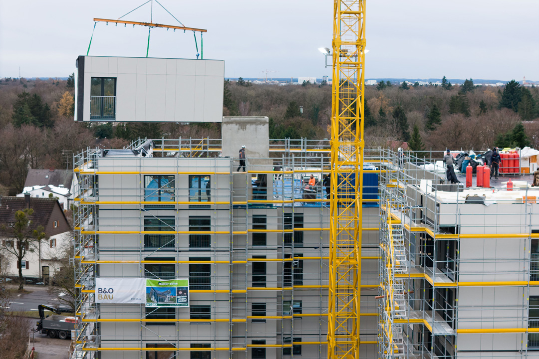 V Mnichově v současné době probíhá sériová rekonstrukce dvou pětipodlažních bytových domů mnichovského stavebního družstva Hartmannshofen e.G. a současní s tím i přístavba dalších tří podlaží s využitím klimaticky neutrální technologie dřevěných prefabrikovaných panelů.