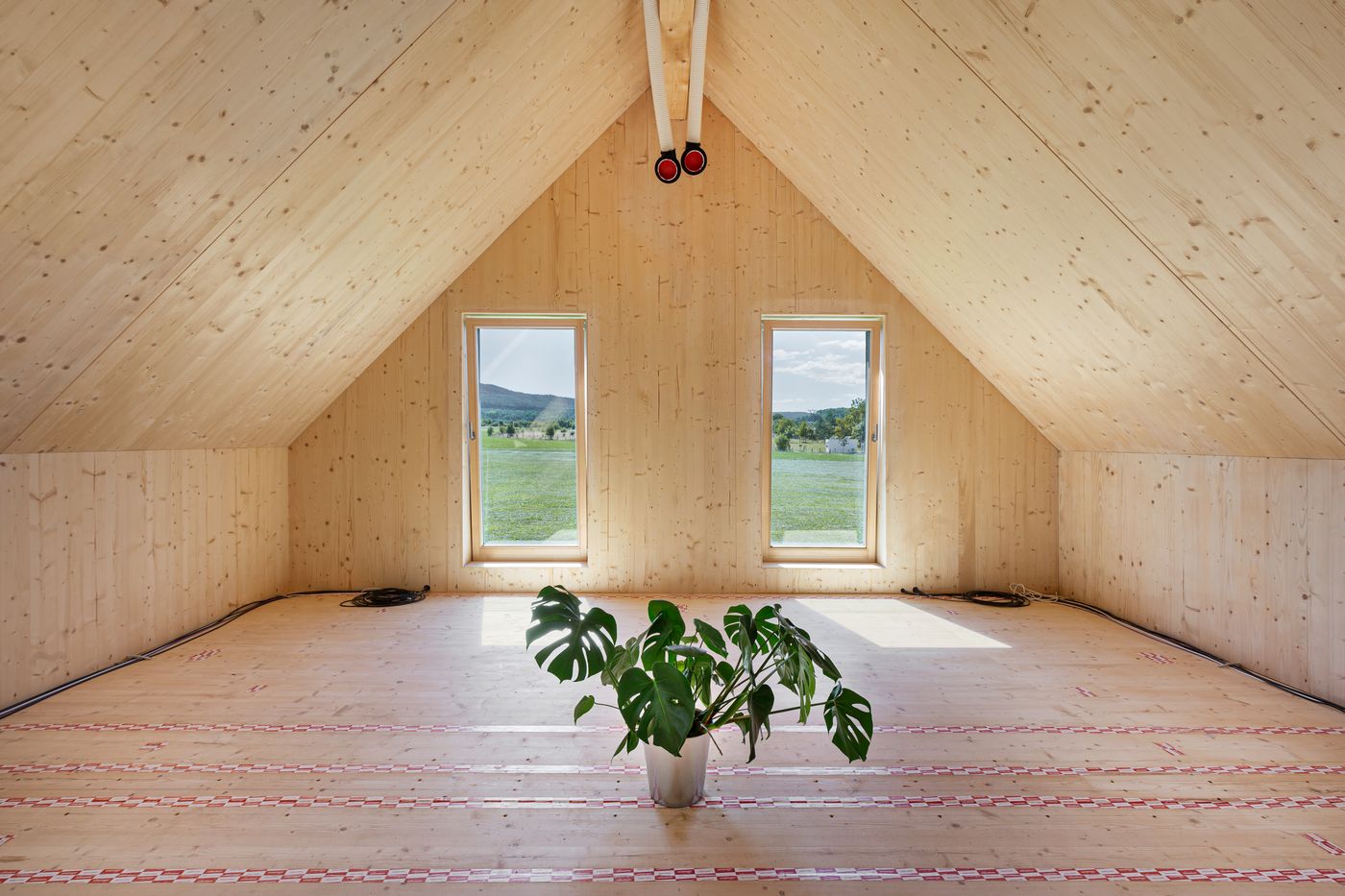 O tepelný komfort se stará podlahové topení fermacell® Therm25. Tento systém umožňuje celkovou výšku podlahy (včetně topných prvků) od cca 35 mm a díky své relativně nízké hmotnosti také nevytváří nadměrné zatížení konstrukce. Toto podlahové topení navíc umožňuje použití běžných povrchových krytin (laminát, parkety, PVC, dlažba) bez nutnosti výrazných úprav. Systém je navržen pro topné trubky o průměru 16 mm a drážky s relativně malou vzdáleností mezi nimi, což zajišťuje efektivní přenos tepla.