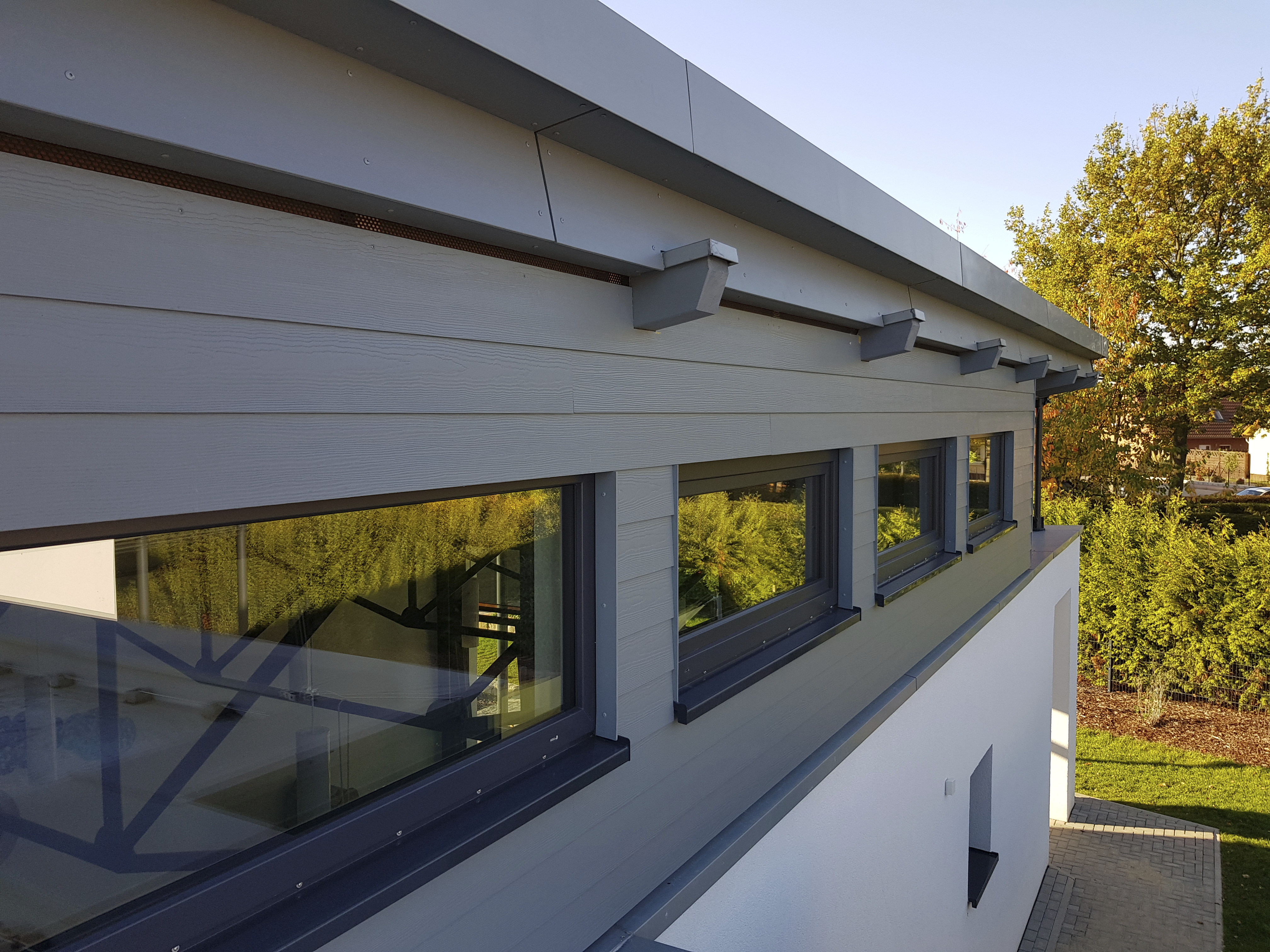 Hlavního architekta nakonec přesvědčila realistická a přírodní dřevěná struktura, kterou vláknocementové desky James Hardie mají, a zejména to, že obklad mohl být realizován v antracitově šedé barvě, hodící se k laku ocelových nosníků. I přes vícenáklady ve výši cca 5 % obec požádala o dodatečnou nabídku. „Obec porovnala náklady obou variant", říká architekt Frank Guder a dodává: „Z výsledku srovnání vyplynulo, že vícenáklady by se amortizovaly již při první renovaci."